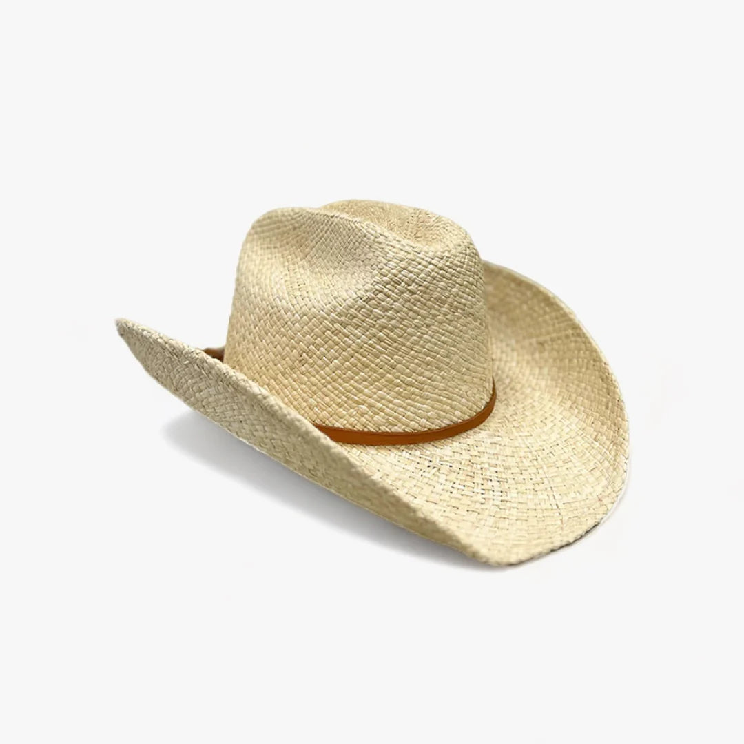 Elaborado en palma de iraca natural, tejida artesanalmente, un material ligero y transpirable que aporta textura, frescura y carácter.