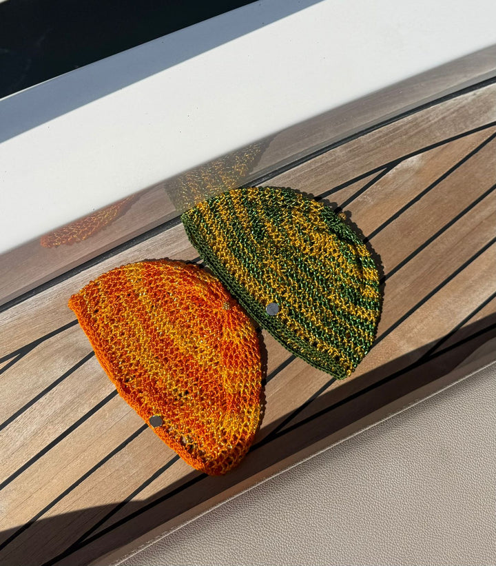 Inspirado en el Fashion Week de Copenhagen, este sombrero tejido artesanalmente combina ligereza, detalle y modernidad. Adornado con mostacillas que reflejan la luz, es una pieza versátil y sofisticada que eleva cualquier look.